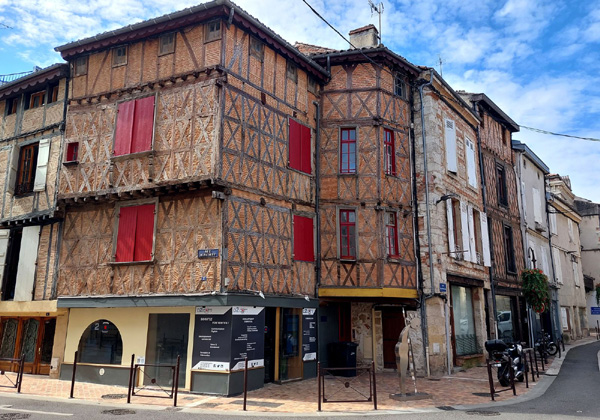 | Maisons à colombages de la rue Beauville dont les façades et les toitures sont inscrites aux Monuments historiques depuis 1993. Le site date de la fin du 15ème siècle, époque à partir de laquelle la ville est rebâtie après la guerre de Cent Ans. |