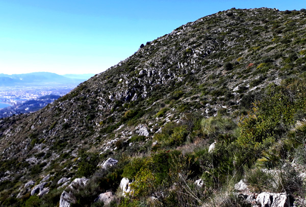 | Mercredi 23 décembre 2020, 12h30, 22ºC Ascension du Mont San Antón (491 m) par la face est au départ de la résidence San Antón. |