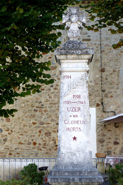 | Place du Château et église Saint-Pierre d'Uzer, achevée en 1826 |