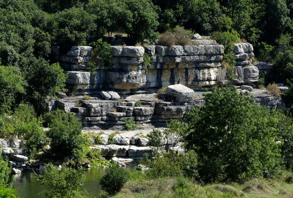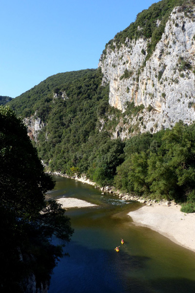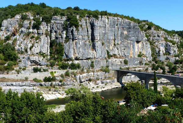 | Gorges de l'Ardèche, vertigineux canyon (jusqu'à 300 m de haut) creusé dans le plateau calcaire, couvert de guarrigues et de chênes verts. Réserve naturelle nattionale depuis 1980 |