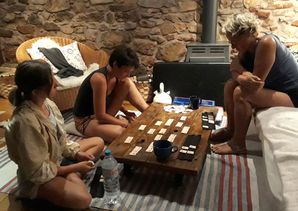 | Partie de Rummikub, jeu de société dont les règles sont très voisines du jeu de cartes du Rami |