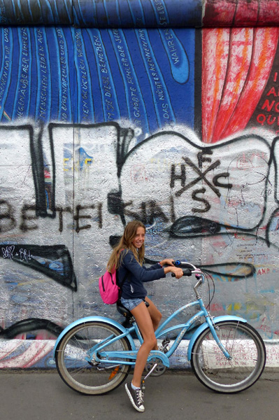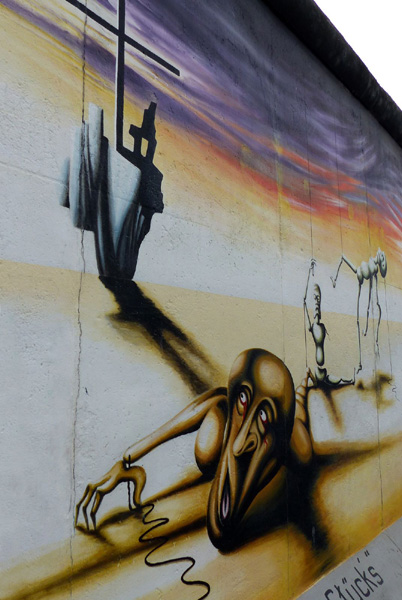| L'East Side Gallery est un morceau du mur de Berlin de 1,3 km de long qui sert de support pour une exposition d'oeuvres de street art. Il s'agit de la plus longue section du mur encore debout. Elle est constituée de 118 peintures d'artistes de divers pays. Le premier tableau a été effectué par Christine Mac Lean en décembre 1989, immédiatement après la chute du mur. |