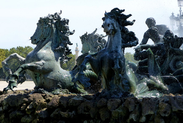 | Monument aux Girondins (20ème siècle), fontaine typique de la 3ème République sur la place des Quinconces. Parmi la profusion de statues émergent le Char de la République, le Triomphe de la Concorde et, au sommet de la colonne centrale, la Liberté brisant ses chaînes. |