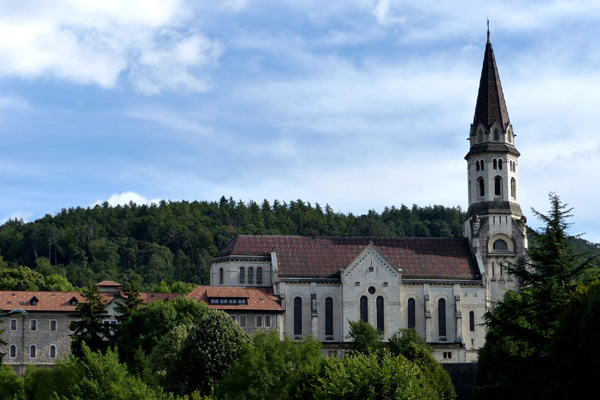 | La Basilique de la Visitation, dressée sur le crêt du Maure, domine Annecy et se repère à des kilomètres à la ronde. Symbole du prestigieux passé religieux de la ville, la basilique fut bâtie de 1909 à 1930 sur les plans de l'architecte grenoblois Alfred-Henri Recoura. Elle jouxte le monastère maison-mère de l'Ordre de la Visitation, fondé en 1610 par François de Sales et Jeanne de Chantal. En 1986, à l'occasion de la visite du Pape Jean-Paul II, deux cloches ont été fondues, l'une d'elle a été intégrée dans le carillon de la Basilique. Le clocher a une hauteur de 72 m. Il est surmonté d'une croix de bronze de 7 m. |