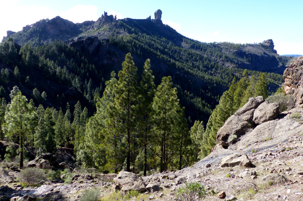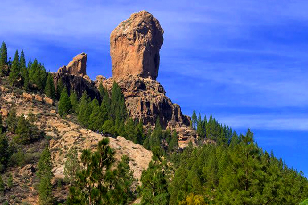 | Le Roque Nublo, monolithe de basalte haut de 80 mètres culminant à 1813 mètres d'altitude |