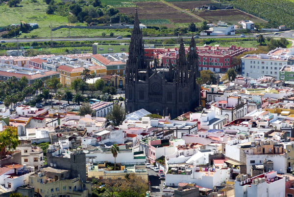 | L'église néogothique de San Juan à Arucas a des airs de Sagrada Familia (Gaudi). Sa construction démarra en 1906 pour s'achever 70 ans plus tard. |