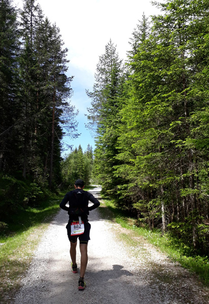 | Descente vers le refuge Col Gallina (ravitaillement du KM 95) |