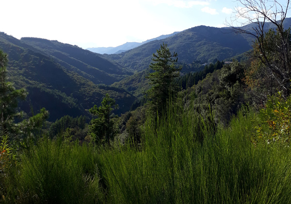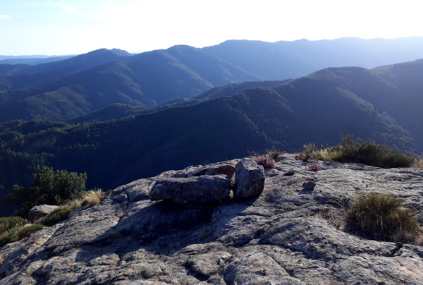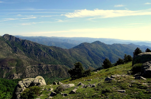 | Vue panoramique sur les monts ardéchois du Massif du Tanargue dont le point culminant s'élève à 1511 m d'altitude |