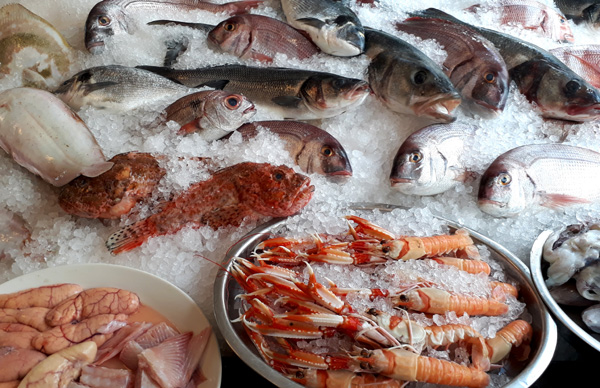 | Fruits de mers et cervezas au Chiringuito Los Marinos Paco sur la plage de Carvajal à Fuengirola, longée par le Paseo Marítimo Rey de España |