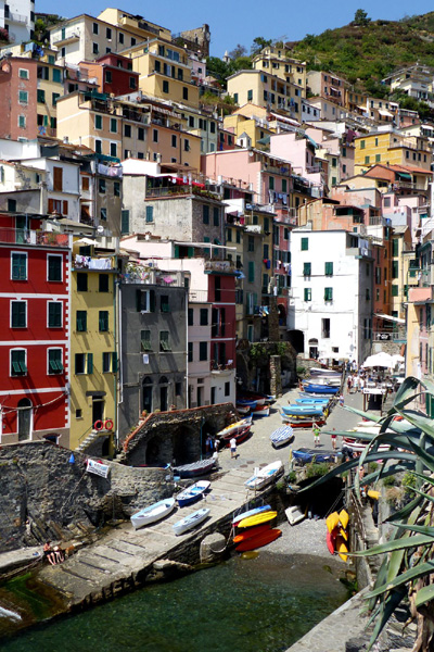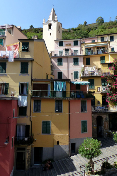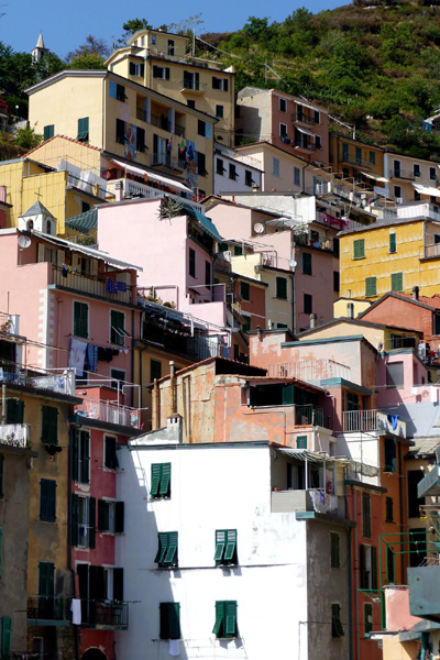 | Riomaggiore, ancien village de pêcheurs qui aurait été fondé au 8ème siècle par des réfugiés grecs fuyant la persécution de Leone III Isaurico. Riomaggiore est le village le plus à l'est des Cinque Terre. |