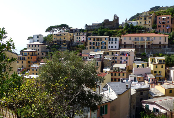 | En arrière-plan, le château de Riomaggiore |