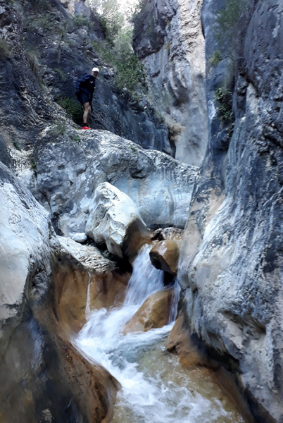 | Cascade infranchissable... pas d'autre choix que de rebrousser chemin et contourner l'obstacle en grimpant. |
