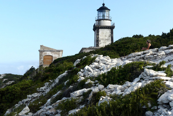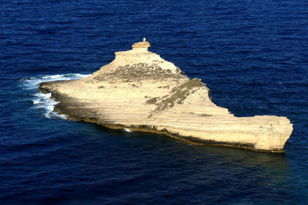 | Phare de Pertusato, construit en 1844, à 4 km au sud-est de Bonifacio. Il balise la côte sud de la Corse et l'entrée du port de Bonifacio. |