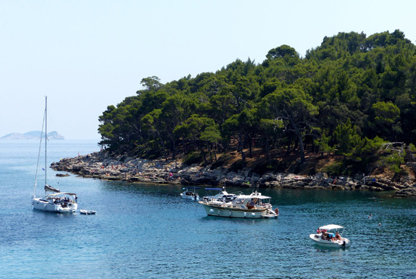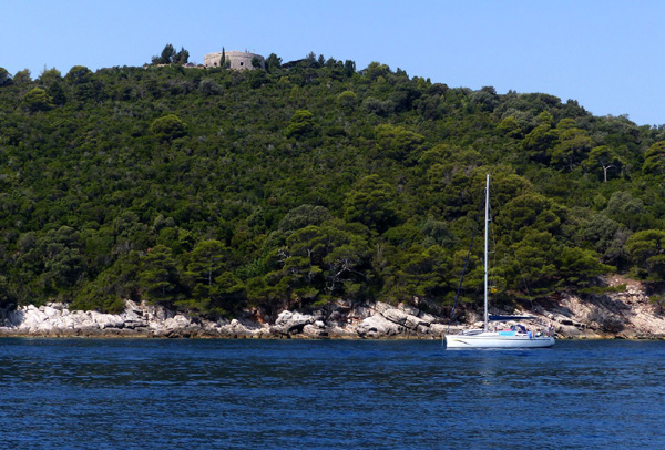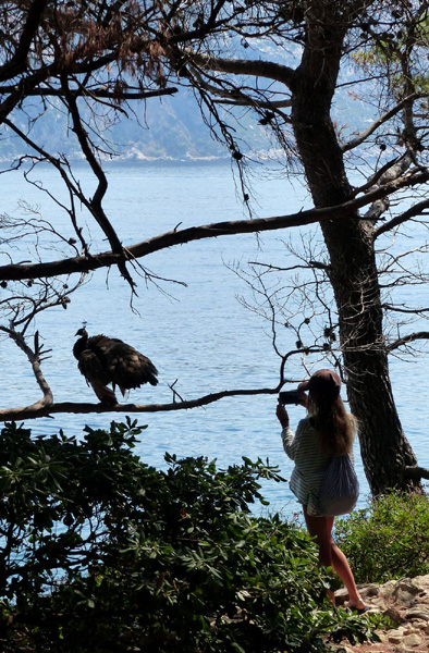 | Départ pour l'île de Lokrum... Lokrum (qui veut dire fruit amer en latin) s'étend sur 2 km de long et 500 m de large. Essentiellement recouverte d'arbres, l'île est classée réserve naturelle depuis 1964 et abrite de nombreuses espèces de plantes : les lauriers roses tutoient les cyprès, pins noirs et autres chênes mais aussi cactus, magnolias et eucalyptus. L'île est habitée dès 1023 à la suite du grand incendie qui ravagea Dubrovnik. La légende maléfique de Lokrum : Les moines vivaient paisiblement sur l'île lorsqu'en 1798, l'île fut vidée de ses religieux par les troupes napoléoniennes supportées par 3 personnalités de Dubrovnik. Les moines jetèrent alors un sort à quiconque viendrait habiter et posséder les lieux. Les responsables de l'expropriation ne purent pas jouir de l'île. Tous mourrirent tous très rapidement et de façon violente. La malédiction s'est depuis poursuivie et tous les propriétaires successifs de l'île connurent un destin tragique. Aujourd'hui, l'île est uniquement visitée par les touristes. |