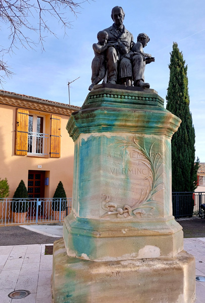 | Statue de Charles Joseph Verminck, né à Poperinge (Belgique) en 1799. Instituteur, il a créé l'école publique de Fuveau en 1824 et a enseigné pendant 38 ans. |