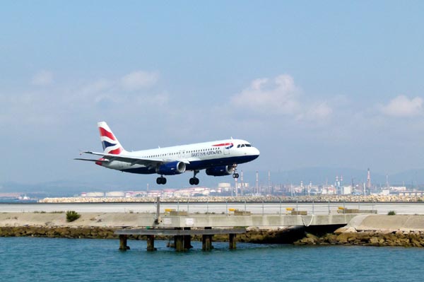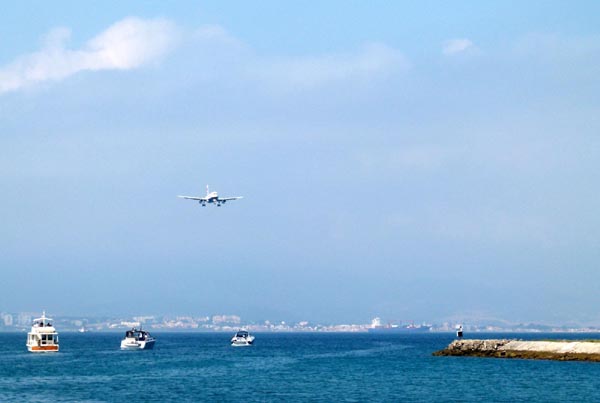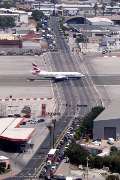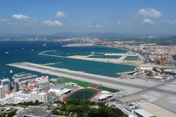 | La piste d'aterrissage de Gibraltar et la ville espagnole de La Linea de la Concepcion en arrière-plan |