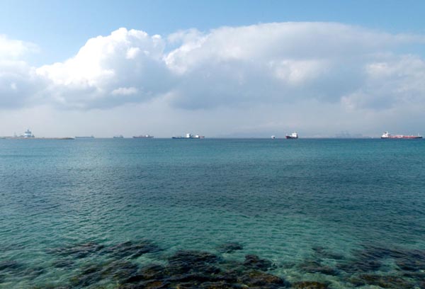 | Pétroliers et cargots attendant leur tour dans la Baie d'Algeciras |