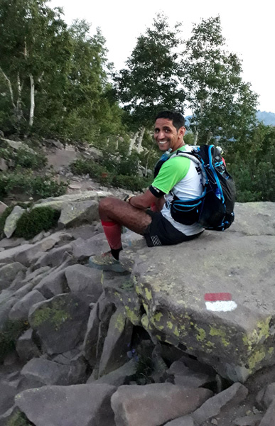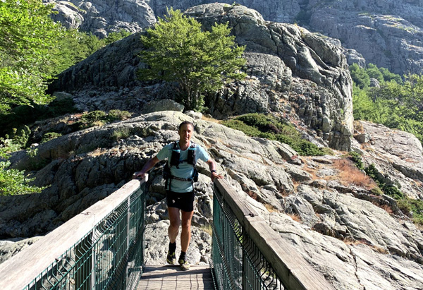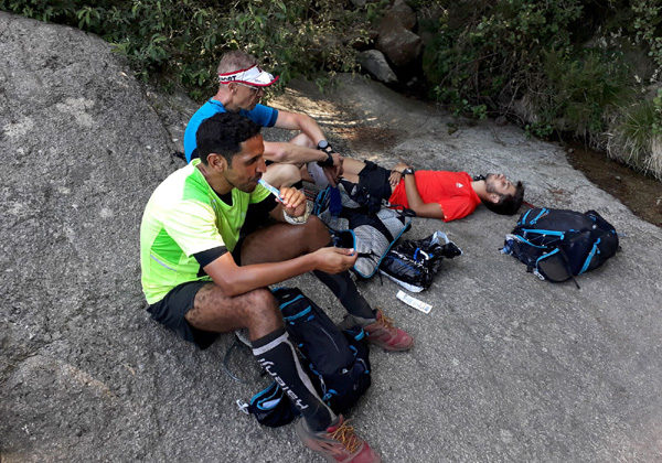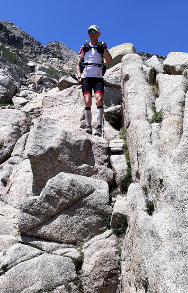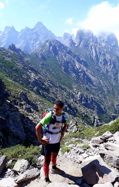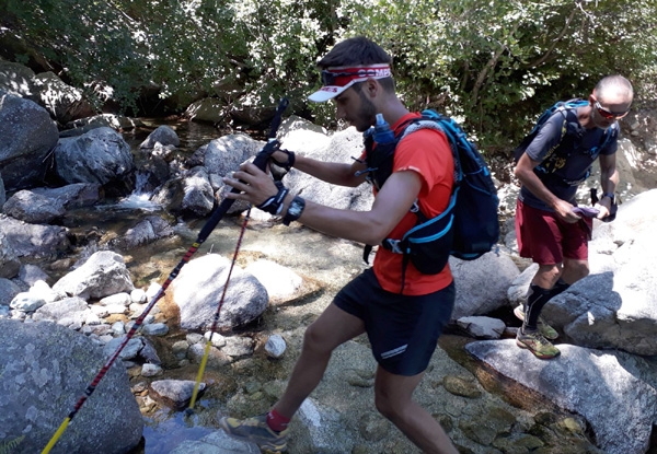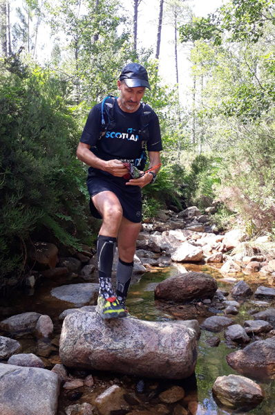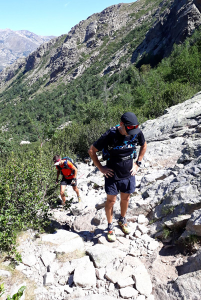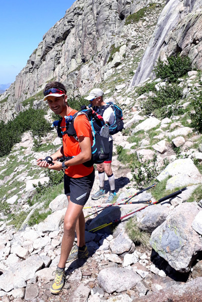 | Laurent vivra 46 km d'enfer jusqu'à l'arrivée à Conca (ampoules percées et peau à vif)... Seul un ancien légionnaire est capable d'endurer la souffrance aussi longtemps. |