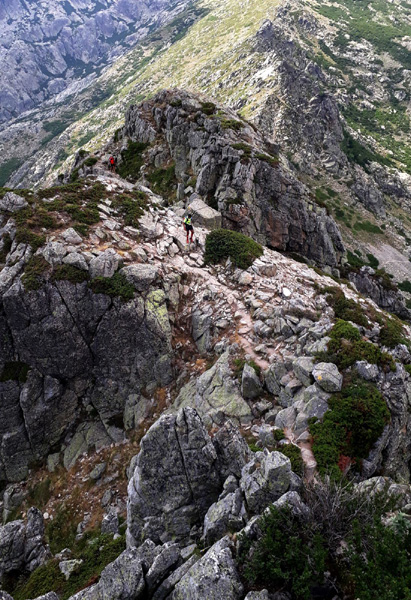 | 180 km, plus de 15000 m de dénivelé positif cumulé et autant de dénivelé négatif Le GR20, sentier de grande randonnée de haute altitude réputé le plus difficile d'Europe, chemine tout au long des montagnes corses, du nord-ouest (Calenzana, région de Calvi) au sud-est (Conca, région de Porto Vecchio). |