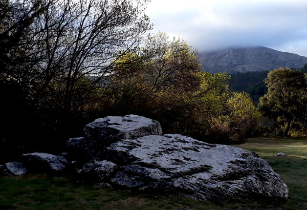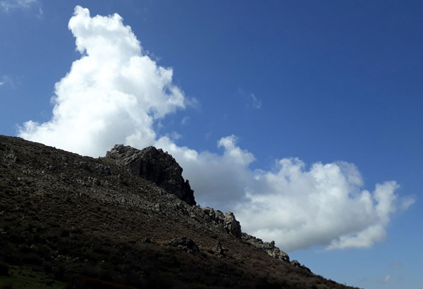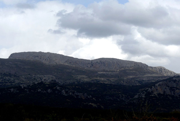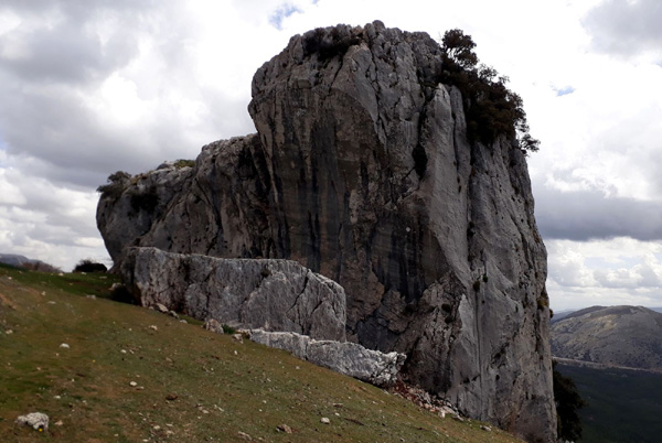 | Je reprends de la hauteur, splendide vue sur l'imposant Peñón de la Cruz que je viens de dévaler |