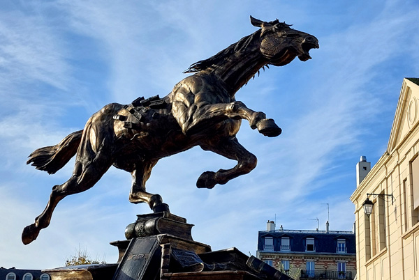 | "Cheval Ptolémée", sculpture en bronze réalisée en 2021 par Jean-Charles Hachet et François Lavrat |