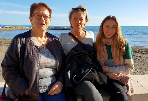 | Mamie Michèle, en vacances à Málaga, et Maé |