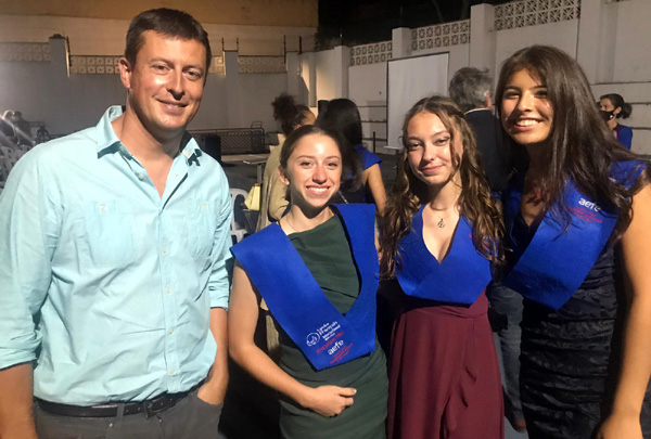 | Maé, Elisabeth et Andrea et leur prof. de Français de Première, Monsieur Moinard |