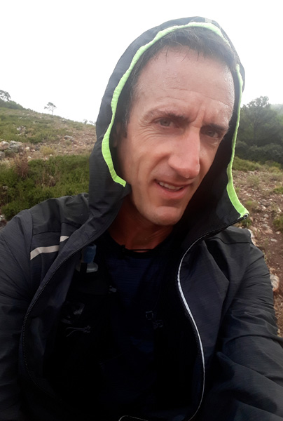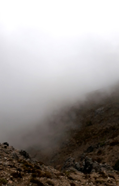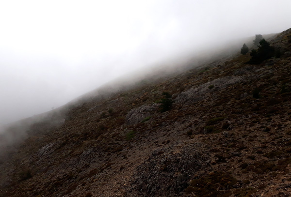 | Pic de La Maroma (2068 m) après 2h42'17" d'ascension : 10°C, visibilité inférieure à 10 m Le temps d'une photo avec le retardeur... pas d'humains aujourd'hui. |