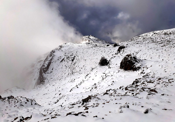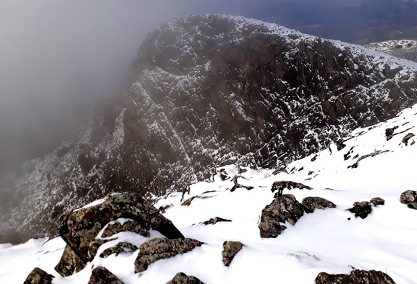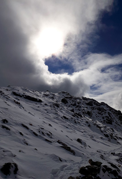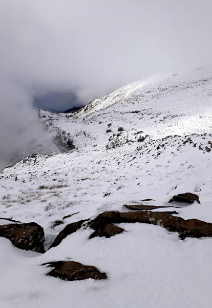 | Epais brouillard oblige, 400 m de dénivelé gravi avec une visibilité souvent réduite à 15-20 mètres... Heureusement, je connais le chemin par coeur pour mener à bien cette 19ème ascension ! |
