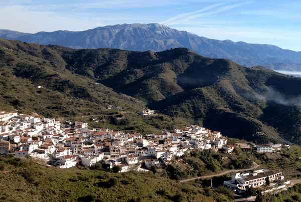 | Village blanc de Moclinejo en Axarquía dans la province de Málaga, entre vignobles, oliviers et amandiers. Connue comme Porte de la route du Raisin Sec (Puerta de la Ruta de la Pasa), la commune de Moclinejo produit un vin délicieux et une huile d"olive de grande qualité. |