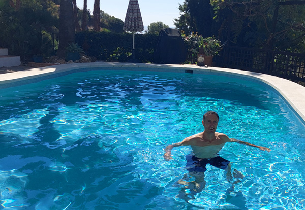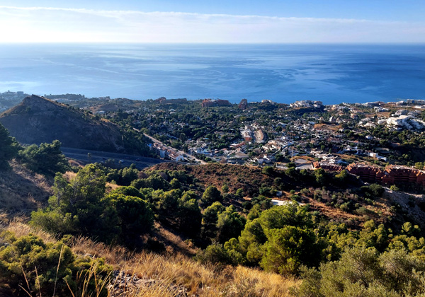 | Dimanche 22 septembre 2024, 9h, 30°C Ascension du Cerro del Moro (939 m) dit "Las Antenas" (Les Antennes) avec Dani et Nico au départ du temple bouddhiste de Benalmádena, le Stûpa. |