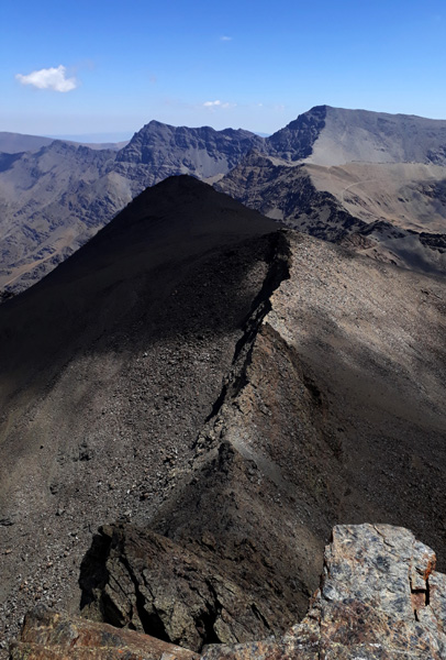 | Le Pic Mulhacén (en arrière-plan) admiré du Pic de Veleta |
