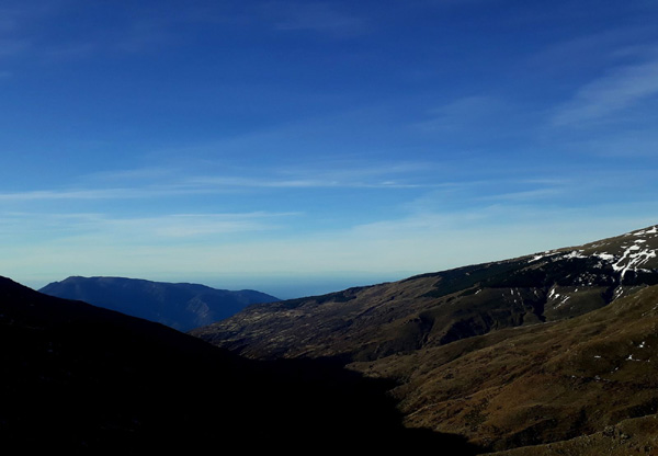 | Dimanche 13 décembre 2020, 8h, 6ºC, ascension du Pic Mulhacén (3478 m) au départ de la Centrale électrique de La Cebadilla (1540 m), sur les hauteurs du village de Capileira (1435 m) |
