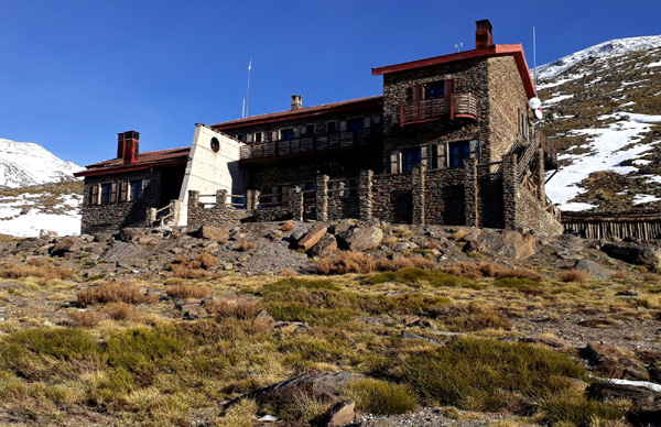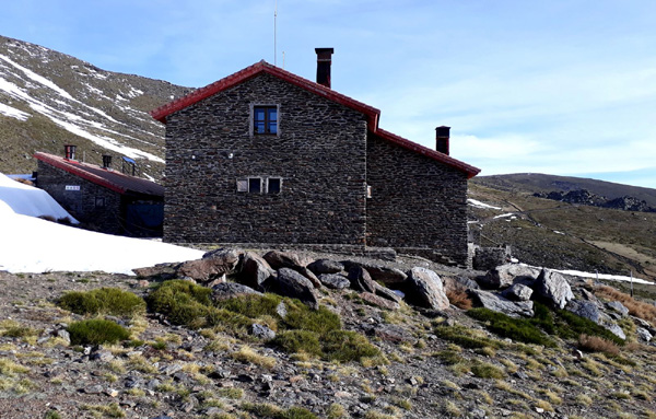 | Refuge de Poqueira (2500 m) où Rafa, le gardien des lieux, nous accueillera après un peu plus de 2 heures d'ascension. Rafa nous avait confirmé cette fenêtre météo exceptionnelle pour une mi-décembre (le refuge abrite une station météo). Transgresser les restrictions dictées par les autorités de Málaga de ne pas sortir de la province s'est naturellement imposé... En Andalousie, la neige n'attend jamais très longtemps en début de saison ! A chacun ses priorités et vive la liberté ! |