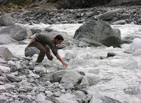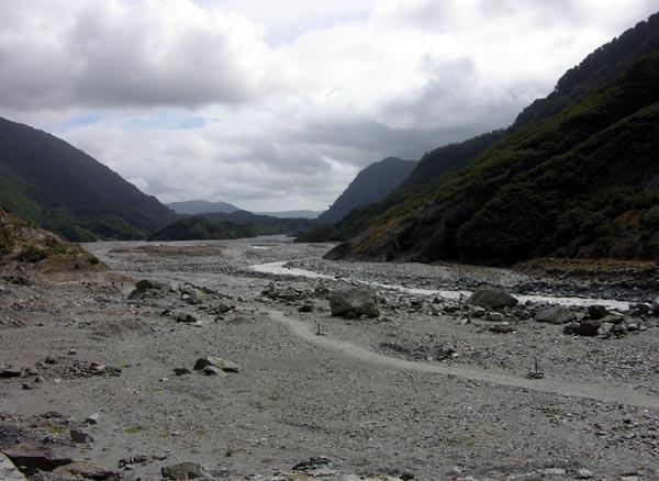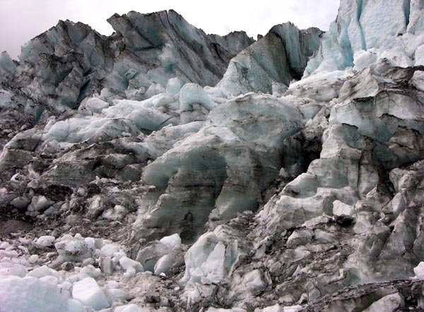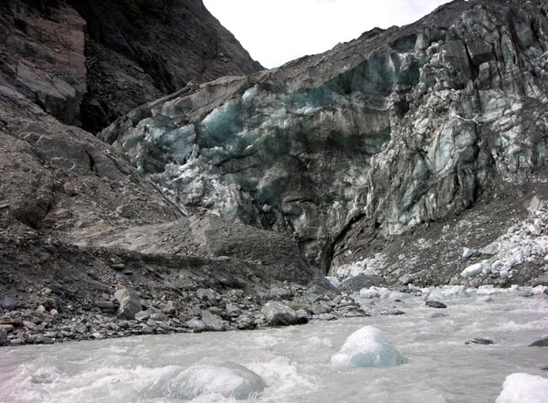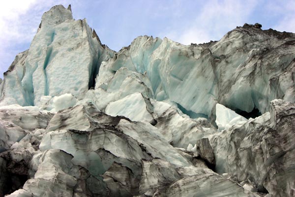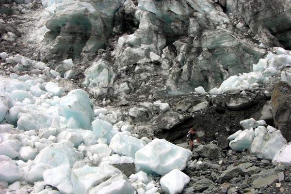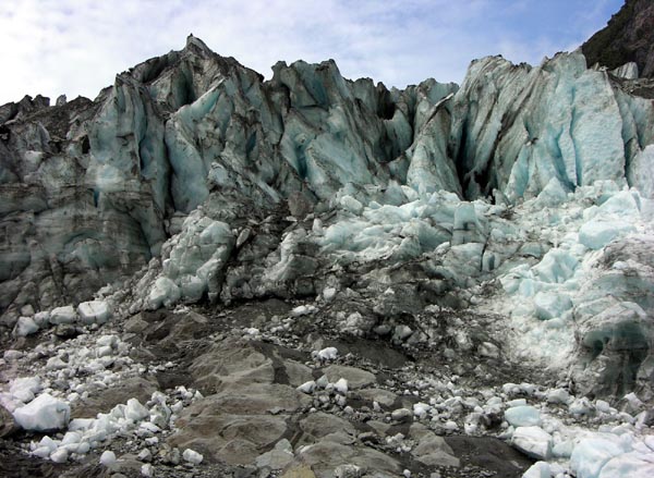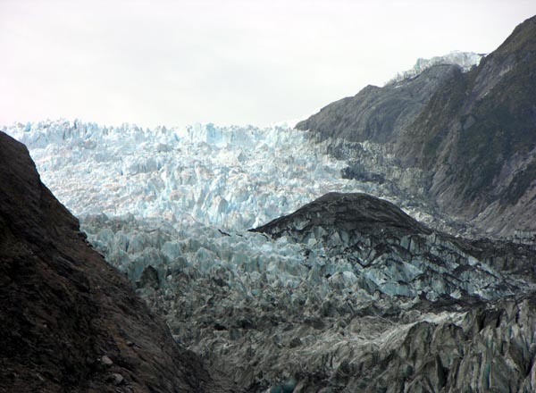| Le glacier Franz Josef, seul endroit au monde à cette latitude où un glacier descend si près de la mer |