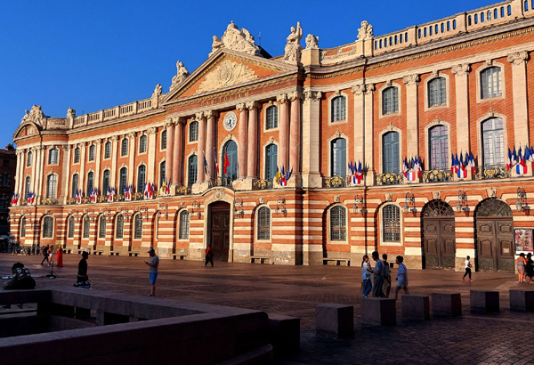 | Place du Capitole, monument qui abrite aujourd'hui l'Hôtel de ville et le théâtre du Capitole. Emblème de la ville et emplacement du pouvoir municipal depuis plus de 8 siècles. |