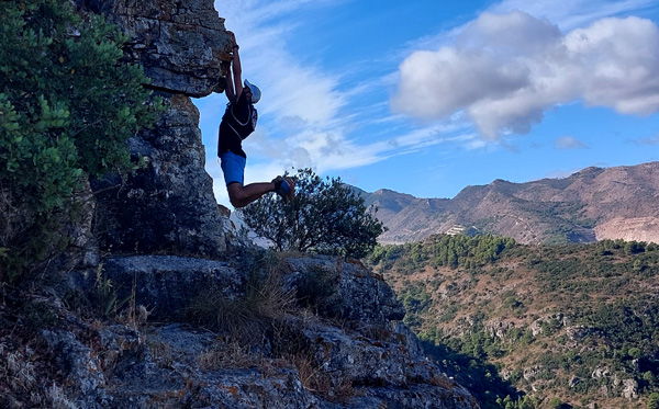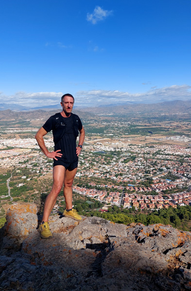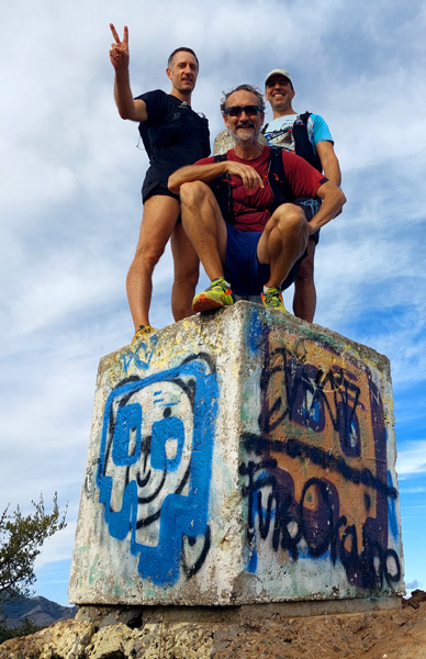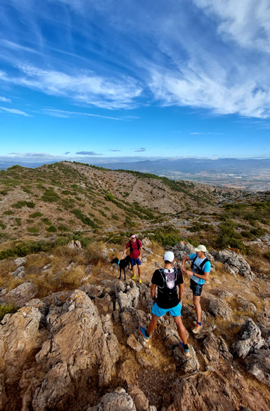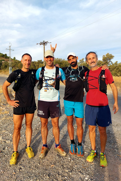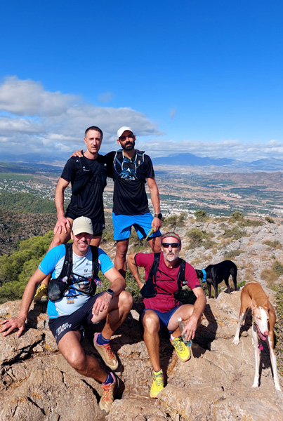 | Dimanche 28 septembre 2025, 9h, 28°C, ascension des Pics de Palomas (599 m) et de Jabalcuza (609 m) au départ de Churriana. Moi, David, David et Nico. |