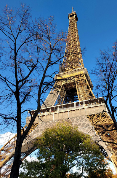 | Tour Eiffel, tour de fer puddlé de 330 m de hauteur située dans le parc du Champ-de-Mars en bordure de la Seine. Construite en 2 ans par Gustave Eiffel pour l'Exposition universelle de Paris de 1889, célébrant le centenaire de la Révolution française, elle est devenue le symbole de la capitale française et un site touristique de premier plan avec près de 6 millions de visiteurs en 2022. D'une hauteur de 312 m à l'origine, la tour Eiffel est restée le monument le plus élevé du monde pendant 40 ans. Sa hauteur a été plusieurs fois augmentée par l'installation de nombreuses antennes, pour atteindre ses 330 m actuels. |