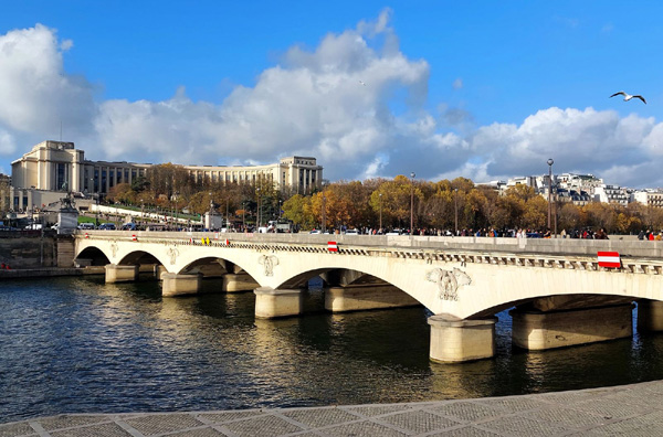 | Pont d'Iéna, pont parisien franchissant la Seine. Construit entre 1808 et 1814, il relie la tour Eiffel au Trocadéro. |
