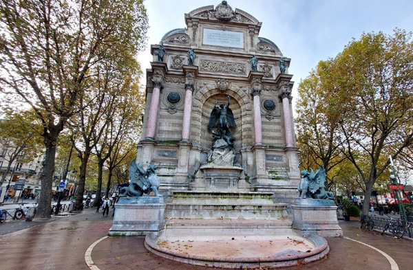 | Fontaine Saint-Michel, conçue par Gabriel Davioud et inaugurée en 1860 |