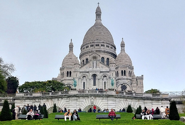 | Basilique du Sacré-Coeur de Montmartre, située au sommet de la butte Montmartre, dans le quartier de Clignancourt. Edifice religieux parisien majeur, "sanctuaire de l'adoration eucharistique et de la miséricorde divine", construit entre 1875 et 1891. |