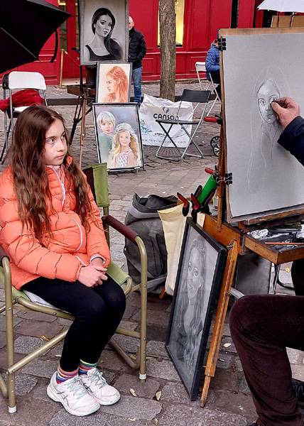 | Place du Tertre, située sur la butte Montmartre, à 130 m d'altitude. Place principale de l'ancien village de Montmartre et célèbre dans le monde entier pour ses artistes peintres qui y dressent leurs chevalets chaque jour pour les touristes. |