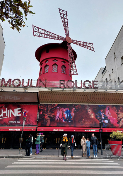 | Le Moulin Rouge, cabaret parisien fondé en 1889 par le Catalan Joseph Oller et par Charles Zidler, qui possédaient déjà l'Olympia. Situé sur le boulevard de Clichy, son style et son nom ont été imités et empruntés par d'autres cabarets dans le monde entier. |