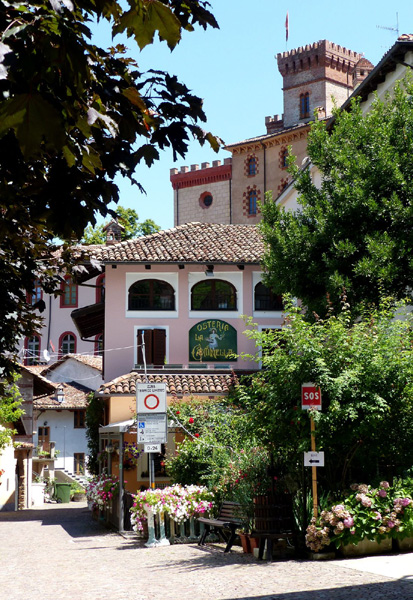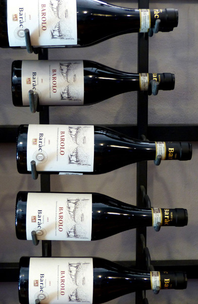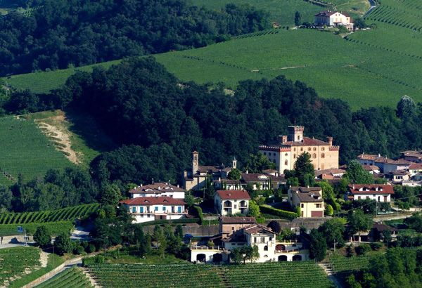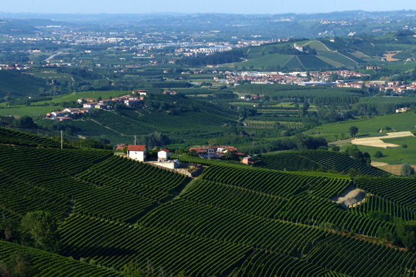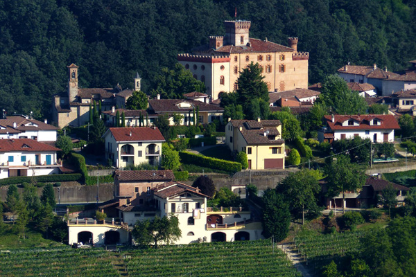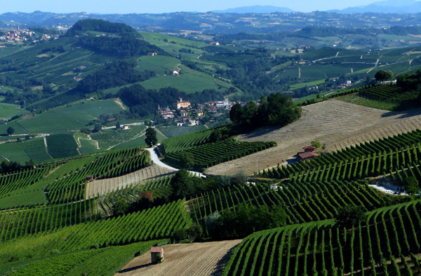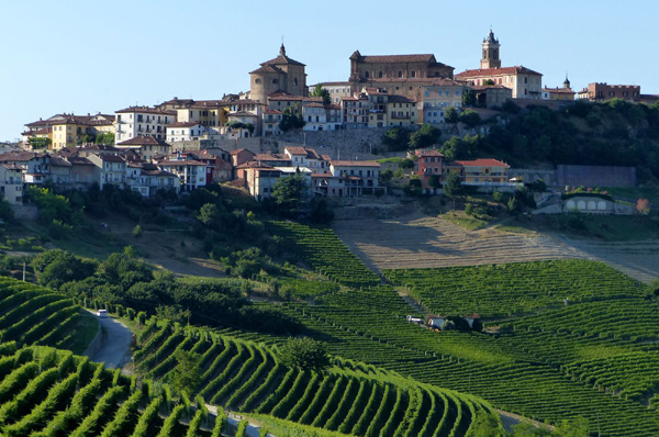 | Barolo, petite ville encerclée par des vignobles à flanc de coteau. Les vins DOCG de Barolo ("roi des vins, vin des rois") sont parmi les meilleurs de toute l'Italie. Aussi chers que très appréciés. Le cépage principal de l'appellation barolo est le nebbiolo. |