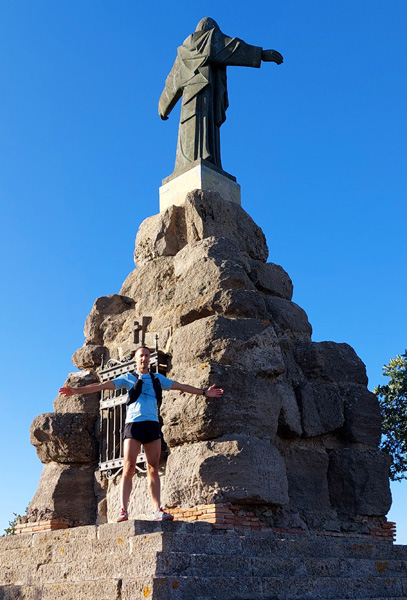 | Samedi 13 novembre 2021, 9h15, 10ºC Ascension jusqu'au "Santo Corazón de Jesús" (Sacré-Coeur de Jésus) (447 m) et au Cerro Cruz (448 m) avec Nico, Sonic et Luna au départ du village de Pizarra |