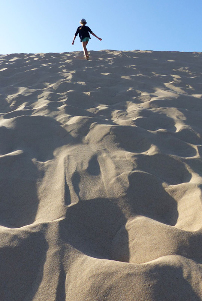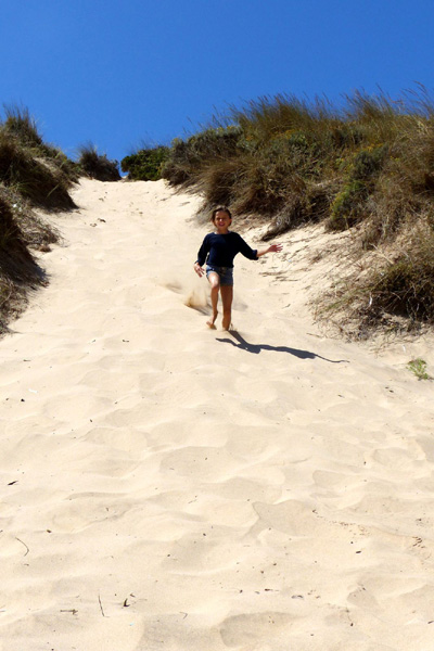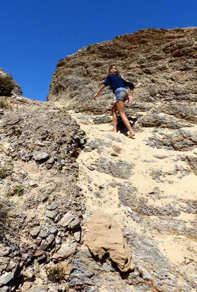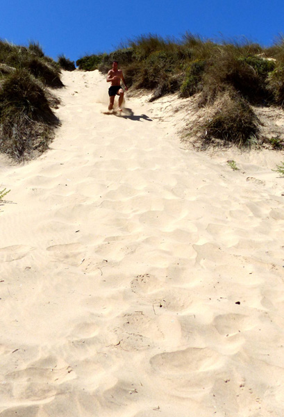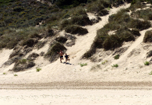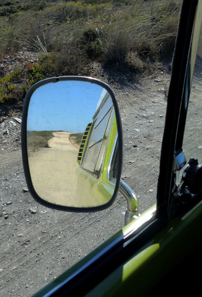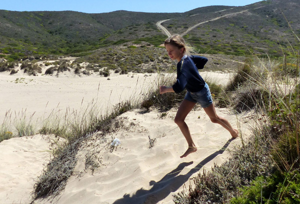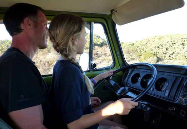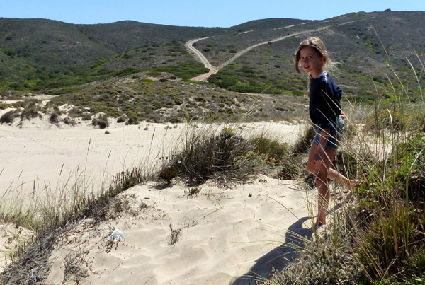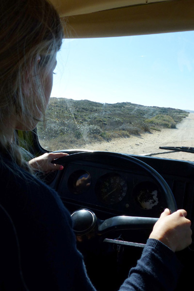| Leçon de conduite sur l'Estrada da Praia, piste qui relie la plage de Bordeira à celle d'Amado |