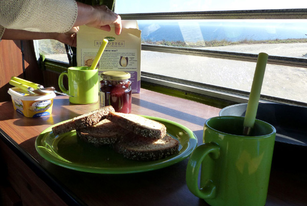 | Maintenant que Maé sait conduire, Marie et moi en profitons pour faire une sieste à l'arrière du van |