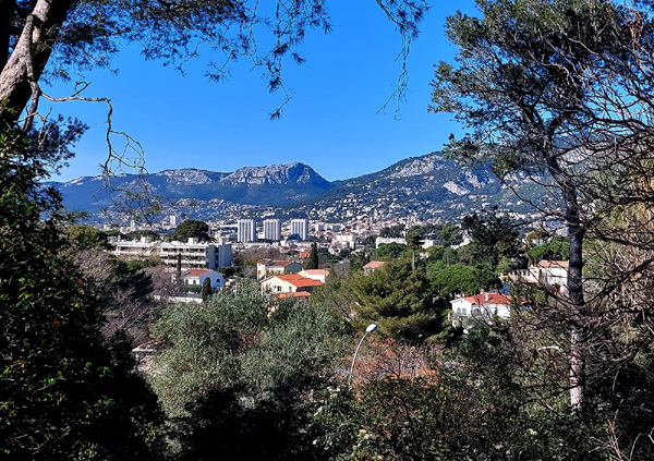 | Toulon et, en toile de fond, Baou des Quatre Aures (576 m) |