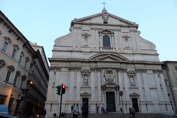 | Eglise du Gesù ou église du Saint Nom de Jésus, édifice religieux catholique emblématique de l'art jésuite. Construite entre 1568 et 1584, elle servit de modèle à de nombreuses églises jésuites de par le monde. Elle est aussi l'église-mère de la Compagnie de Jésus. |