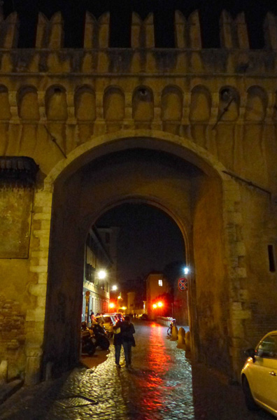 | La Porta Settimiana est une porte du mur d'Aurélien au début de la via della Lungara. Cette porte de la ville existait probablement sous la forme d'une poterne au temps de la construction du mur initial vers 275. An 1498, le pape Alexandre VI fait refaire et ouvre réellement la porte. |